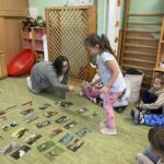 Válogattunk járműveket aszerint, hogy a szárazföldön, a vízen vagy a levegőben közlekednek. Megbeszéltük ki milyen járművön utazott már, kinek mi a kedvenc járműve. Megismerkedtünk néhány közlekedési táblával is, amiket fel is fedeztünk a környező utcákban. Az udvaron masinisztásat játszottunk, a csoportszobában pedig parkoló kártyákra parkoltunk a kisautókkal.